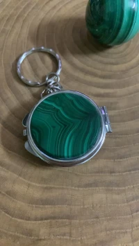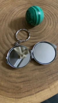 Складное зеркало брелок из малахита круглое — эксклюзивное изделие ручной работы, сочетает природную эстетику, точность обработки и художественный замысел, отличается утончённым стилем и продуманной композицией.