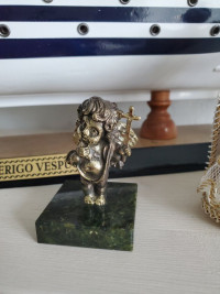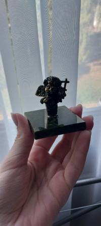Статуэтка "Ангелок с крестом" из бронзы и змеевика — эксклюзивное изделие ручной работы, сочетает природную эстетику, точность обработки и художественный замысел, отличается утончённым стилем и продуманной композицией.