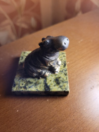Статуэтка "Бегемот сидит" из бронзы и змеевика — эксклюзивное изделие ручной работы, сочетает природную эстетику, точность обработки и художественный замысел, отличается утончённым стилем и продуманной композицией.