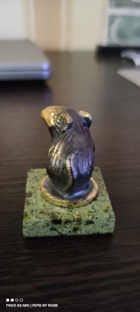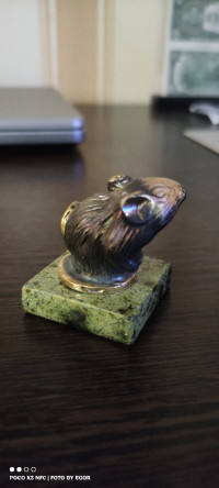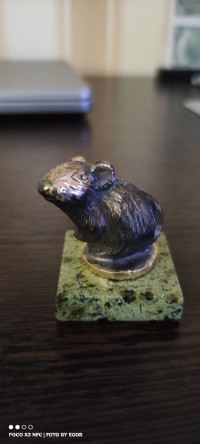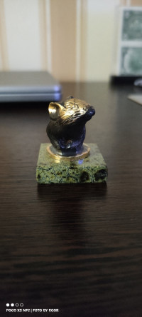 Статуэтка из бронзы и змеевика "Крыса на подставке" — эксклюзивное изделие ручной работы, сочетает природную эстетику, точность обработки и художественный замысел, отличается утончённым стилем и продуманной композицией.