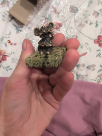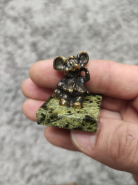 Статуэтка из бронзы и змеевика "Мышка с сумкой" — эксклюзивное изделие ручной работы, сочетает природную эстетику, точность обработки и художественный замысел, отличается утончённым стилем и продуманной композицией.