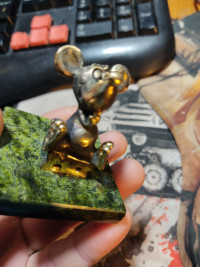 Статуэтка из бронзы и змеевика "Мышонок на сыре" — эксклюзивное изделие ручной работы, сочетает природную эстетику, точность обработки и художественный замысел, отличается утончённым стилем и продуманной композицией.