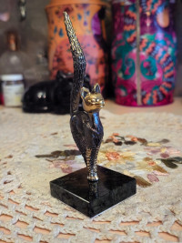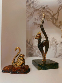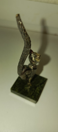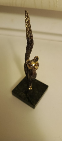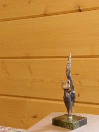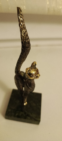 Статуэтка из бронзы "Кошка с длинным хвостом" на подставке из змеевика — эксклюзивное изделие ручной работы, сочетает природную эстетику, точность обработки и художественный замысел, отличается утончённым стилем и продуманной композицией.