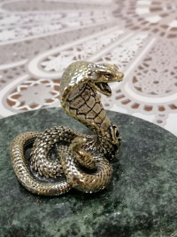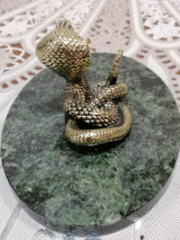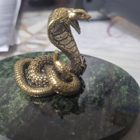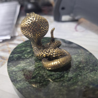 Статуэтка "Кобра" на подставке из шабровского змеевика 10х7,5х5,5 см — эксклюзивное изделие ручной работы, сочетает природную эстетику, точность обработки и художественный замысел, отличается утончённым стилем и продуманной композицией.