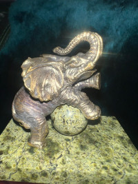 Статуэтка "Слон с шаром цирк" бронза змеевик — эксклюзивное изделие ручной работы, сочетает природную эстетику, точность обработки и художественный замысел, отличается утончённым стилем и продуманной композицией.