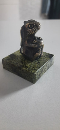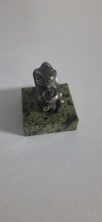 Статуэтка "Заяц с морковкой" из бронзы и змеевика — эксклюзивное изделие ручной работы, сочетает природную эстетику, точность обработки и художественный замысел, отличается утончённым стилем и продуманной композицией.
