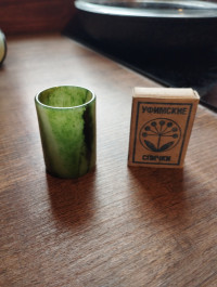 Стопка из камня нефрит 30 мл 35х50 мм — эксклюзивное изделие ручной работы, сочетает природную эстетику, точность обработки и художественный замысел, отличается утончённым стилем и продуманной композицией.
