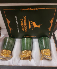 Стопки перевертыши "Осетры" 3 шт камень нефрит бронза Златоуст станет изысканным подарком на юбилей, корпоратив, профессиональный праздник или важное событие. Каждый товар поставляется в подарочной упаковке, полностью готов к вручению.