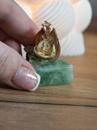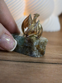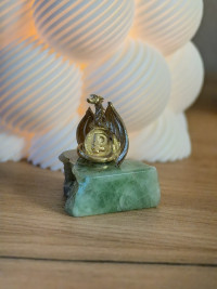 Сувенир "Дракон с монетой" на подставке из флюорита — эксклюзивное изделие ручной работы, сочетает природную эстетику, точность обработки и художественный замысел, отличается утончённым стилем и продуманной композицией.