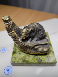 Сувенир "Крыса на венике" бронза змеевик — эксклюзивное изделие ручной работы, сочетает природную эстетику, точность обработки и художественный замысел, отличается утончённым стилем и продуманной композицией.