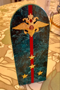 Купить Сувенир "Погон Капитан МВД" камень змеевик в Podari VIP— значит выбрать изделие, в котором соединены природная красота, точность исполнения и эстетика премиум-класса.