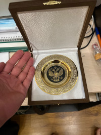 Тарелка с гравюрой "Герб РФ" 12 см Златоуст станет изысканным подарком на юбилей, корпоратив, профессиональный праздник или важное событие. Каждый товар поставляется в подарочной упаковке, полностью готов к вручению.