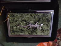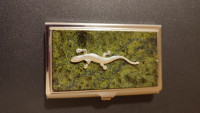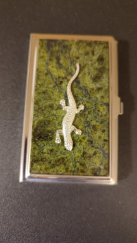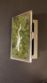 Визитница с прямой ящерицей змеевик цвет серебро — эксклюзивное изделие ручной работы, сочетает природную эстетику, точность обработки и художественный замысел, отличается утончённым стилем и продуманной композицией.