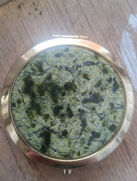 Зеркало круглое со змеевиком цвет золото в подарочной коробке — эксклюзивное изделие ручной работы, сочетает природную эстетику, точность обработки и художественный замысел, отличается утончённым стилем и продуманной композицией.