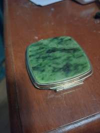 Зеркальце карманное складное из нефрита цвет золото — эксклюзивное изделие ручной работы, сочетает природную эстетику, точность обработки и художественный замысел, отличается утончённым стилем и продуманной композицией.