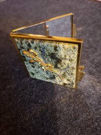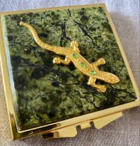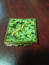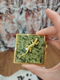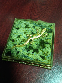 Зеркальце квадратное из змеевика с ящерицей цвет золото — эксклюзивное изделие ручной работы, сочетает природную эстетику, точность обработки и художественный замысел, отличается утончённым стилем и продуманной композицией.