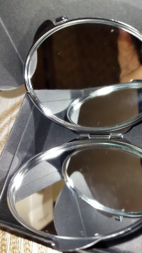 Зеркало двойное, но ожидала, что одно будет с увеличением. Нет, в характеристиках нет про увеличение, и действительно, не увеличивает.