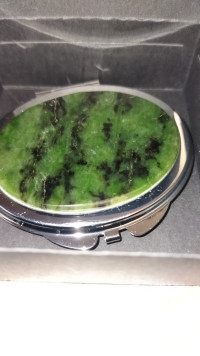 Зеркальце овальное из нефрита цвет серебро — эксклюзивное изделие ручной работы, сочетает природную эстетику, точность обработки и художественный замысел, отличается утончённым стилем и продуманной композицией.