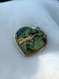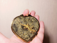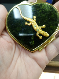 Зеркальце "Сердце" из змеевика с ящерицей цвет золото — эксклюзивное изделие ручной работы, сочетает природную эстетику, точность обработки и художественный замысел, отличается утончённым стилем и продуманной композицией.